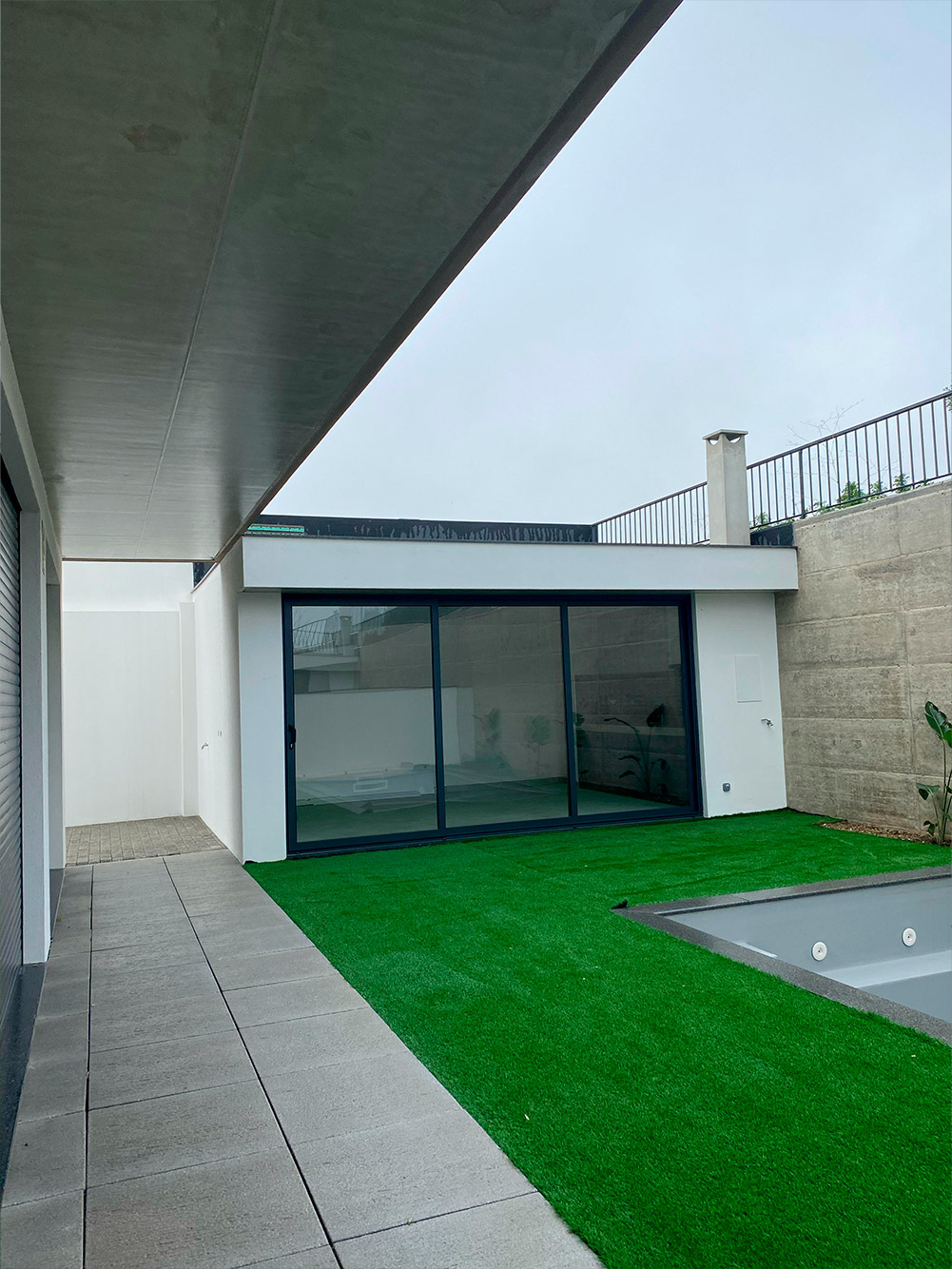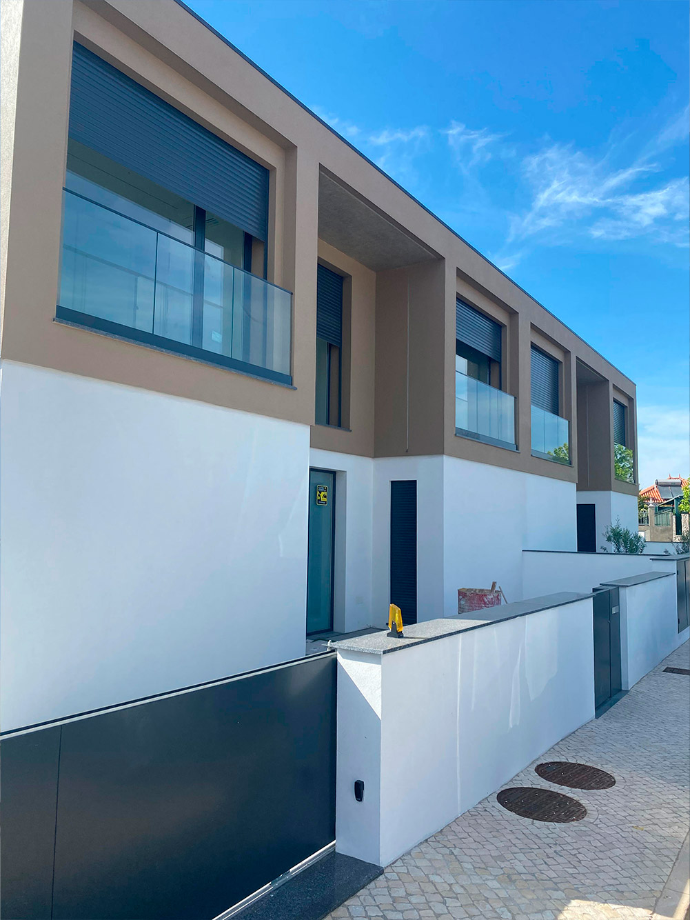 Obra integral de construção de raiz, com foco na funcionalidade, conforto e qualidade de execução. A AJ Feijão foi responsável por todas as fases do projeto: fundações, estrutura, acabamentos interiores e exteriores, incluindo estuques, rebocos e isolamentos.